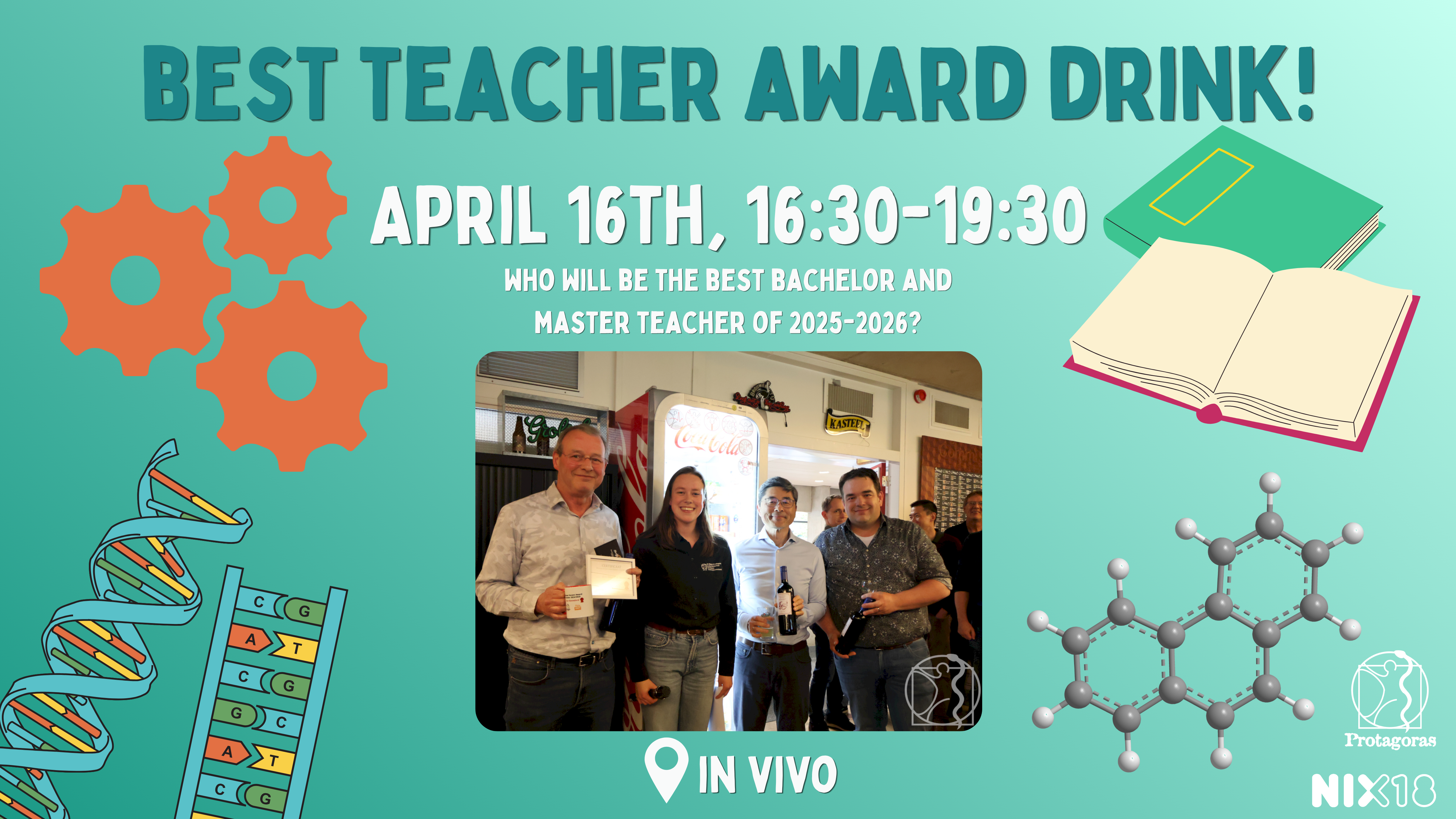 To demonstrate our appreciation for the dedication of our professors, Protagoras will once again award the Best Teacher Award this year to the best bachelor - and master teacher. You van vote until April 2nd with the link. The best bachelor and master teachers will be announced during the best teacher award drink on Thursday 16th of April, from 16:30 to 19:30. We look forward to seeing you there!
